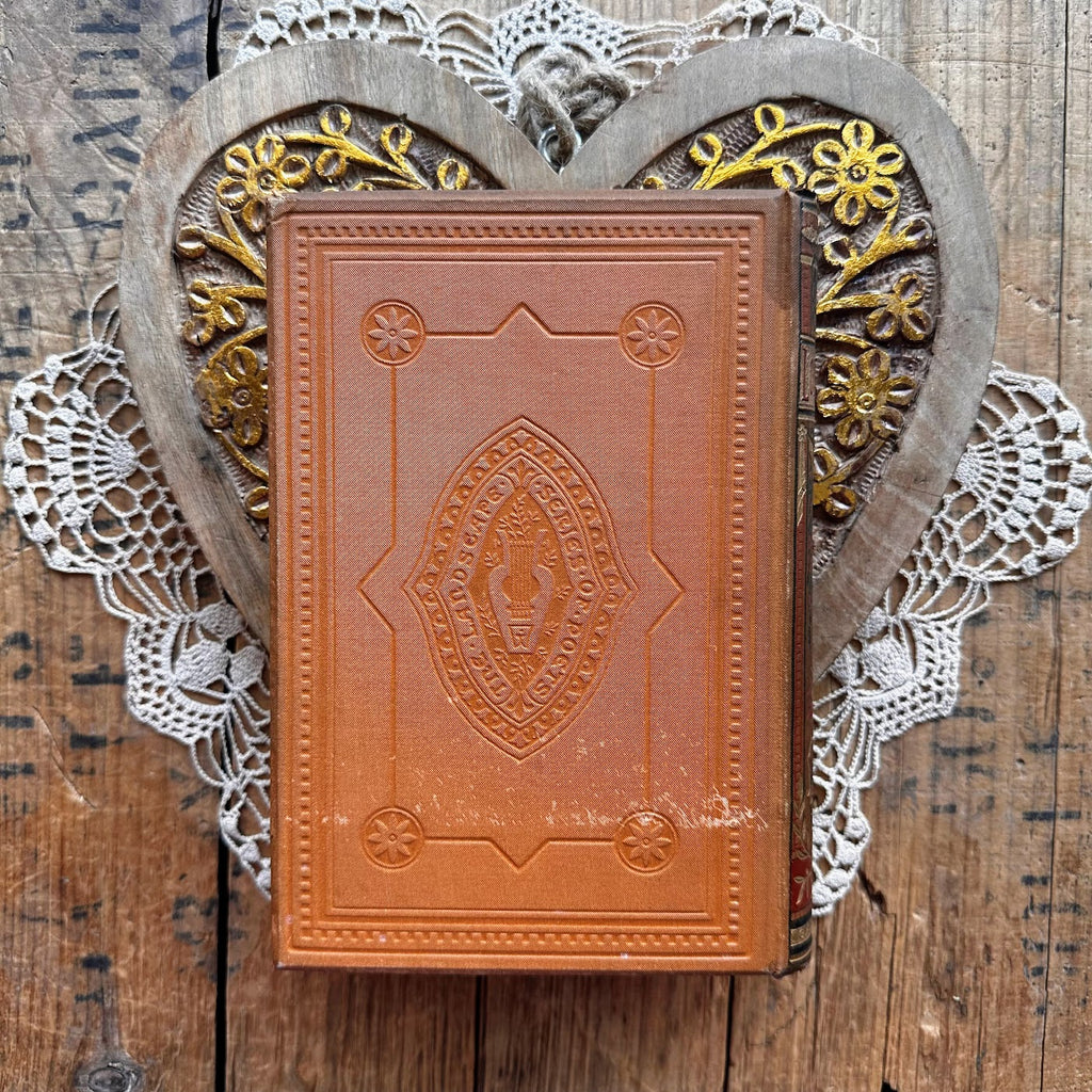 There is no publish date, but there are inscriptions in the front from 1886, 1943, and 1992 (very cool to see the history of who owned this book!). The cover, spine, and pages have wear and discoloration due to age and the title page is detached (pictured). This book measures about 7.75" x 5.25" x 1.25". Please note that photos may appear brighter than actual book.