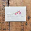 sweet pea definition greeting card in typewriter font with original pink and blue floral watercolor image.