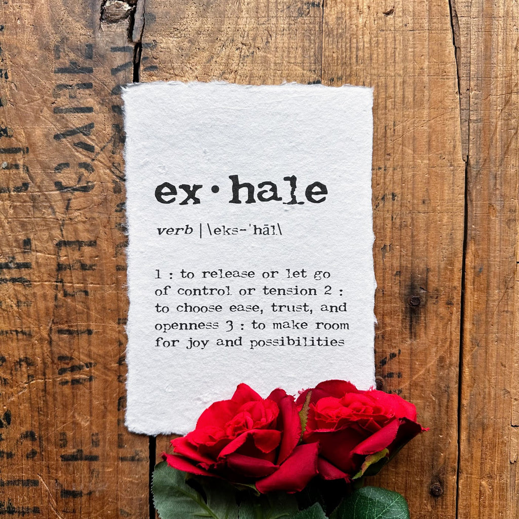 Exhale means to release or let go of control or tension, to choose ease, trust, and openness, and to make room for joy and possibilities.