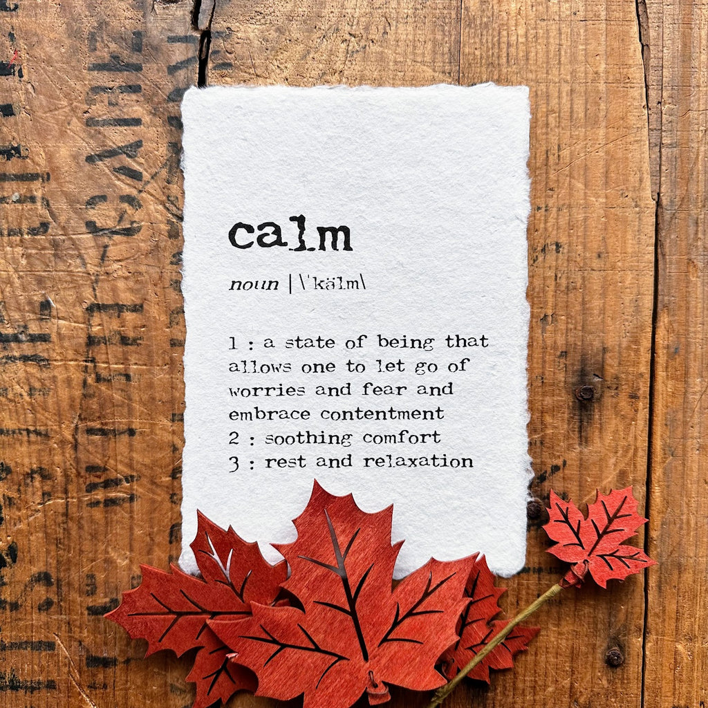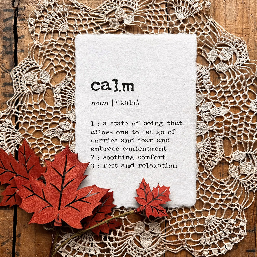 Calm is a state of being that allows one to let go of worries and fear and embrace contentment, a soothing comfort, and rest and relaxation. Gift this calm definition print to someone special or keep it for yourself as a daily reminder to welcome more peace into your life.