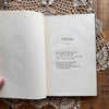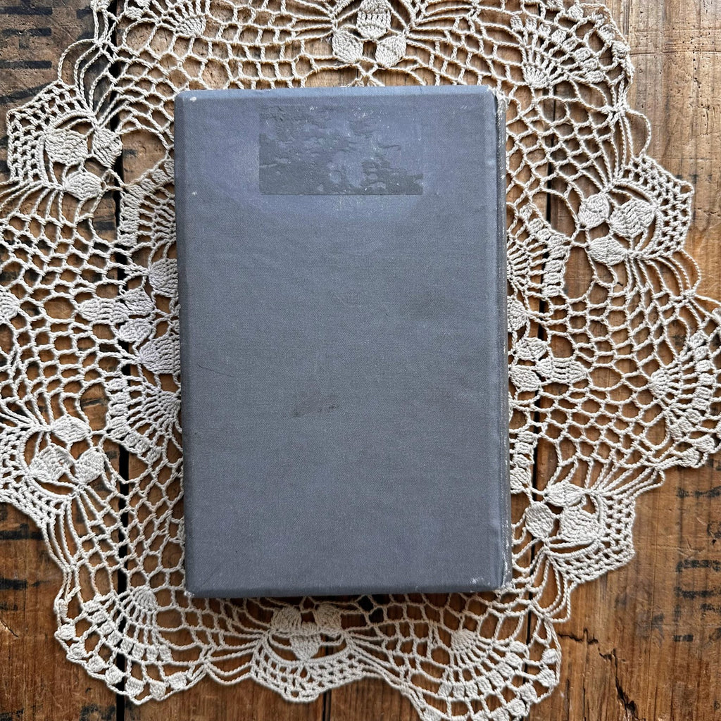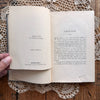 There is wear and tear and discoloration to the cover, spine, and pages due to age. The front cover is a little loose/starting to detach but still in tact. This was also an old library book, so there are some page tears/holes, a missing section of the title page (pictured), and the library card holder at the back of the book has been removed (pictured). The book measures about 7" x 4.5". Please note that photos may appear brighter than actual book.