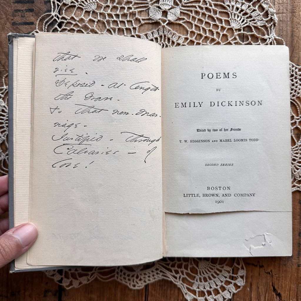 Rare antique 1901 Poems by Emily Dickinson book edited by two of her friends T.W. Higginson and Mabel Loomis Todd. This is the Second Series, Tenth Edition with a gray and gold cover.