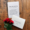 The words are printed in a typewriter font on handmade cotton rag paper with deckle edges. The color of the paper is a natural, unbleached white but may occasionally have tiny speckles of random color from other fibers mixed in. Size varies slightly because of the imperfect nature of handmade paper, but will be roughly 5" x 7", 8" x 10", or 11" x 14" based on your selection.