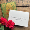 The words are printed in typewriter font on your choice of Kraft BROWN, WHITE, or IVORY cardstock. The kraft brown cardstock is not a flat brown, but has fiber mixed in. Size is 4" x 5.5". Corresponding envelopes are included. You will also receive a free Alison Rose Vintage sticker. Just peel the back off and seal your card with a red rose!