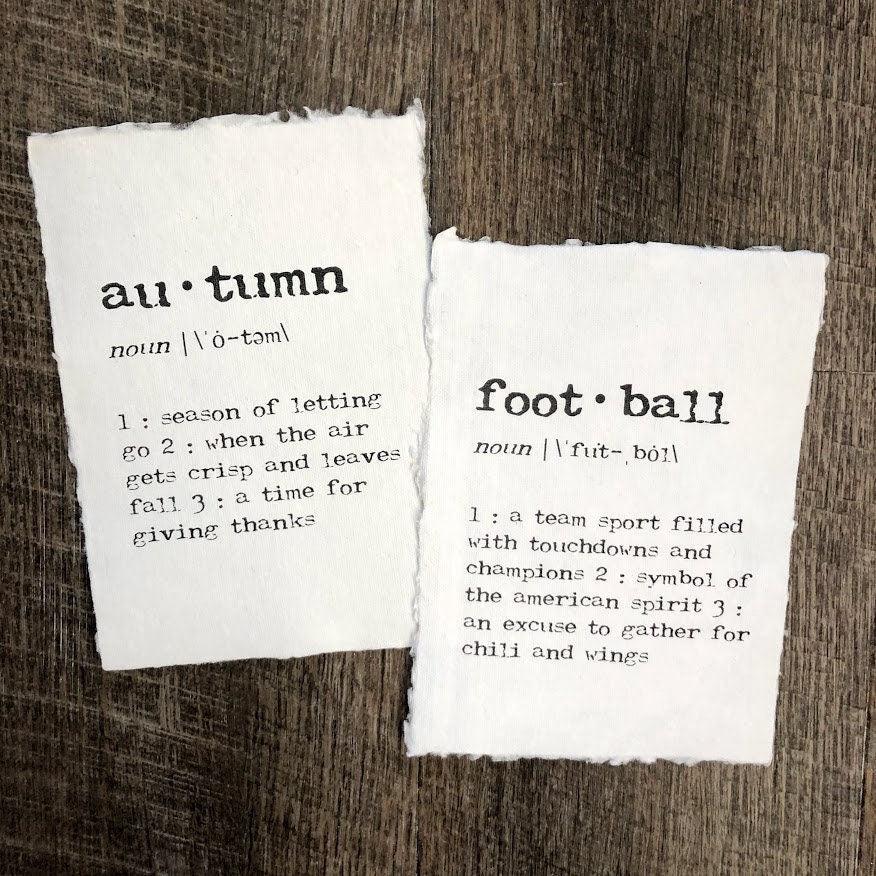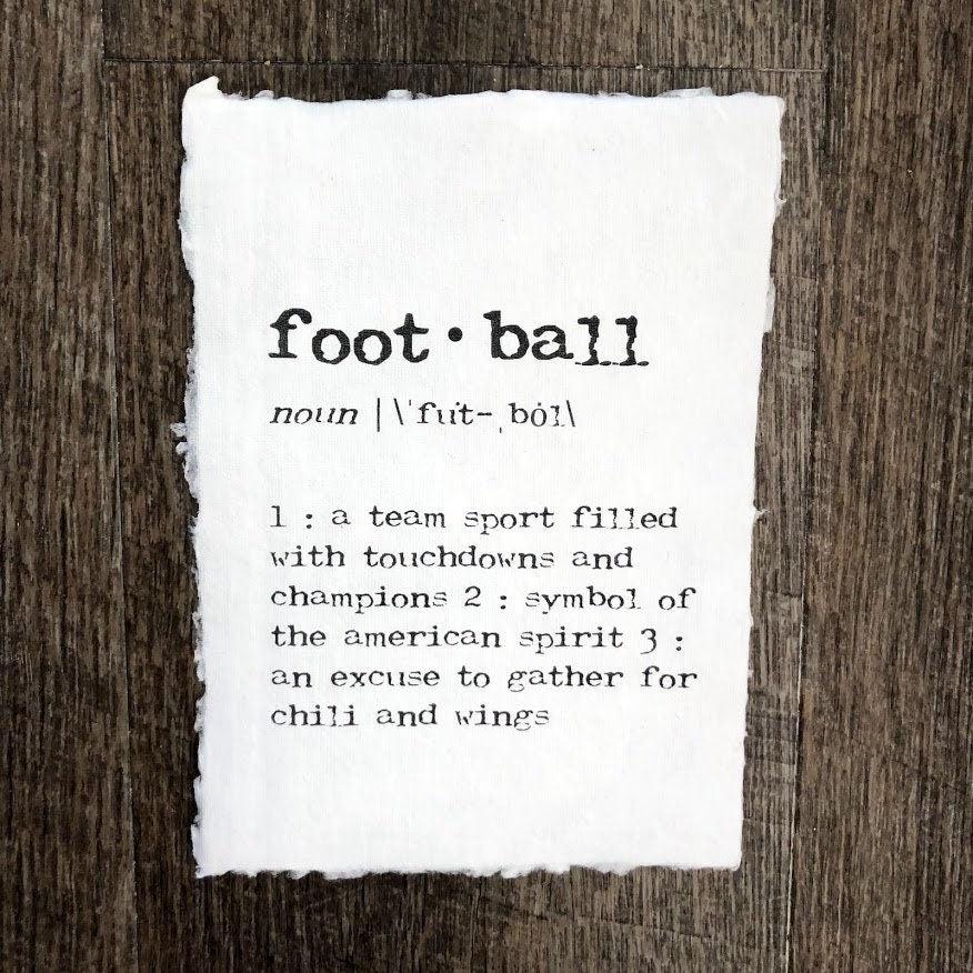 Football is a team sport filled with touchdowns and champions, a symbol of the american spirit, and a great excuse to gather for chili and wings. This football definition print is a perfect gift for a player, fan, sports lover, or as decoration in your home. Go Ohio State! Go Cowboys! :-)