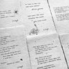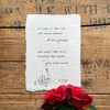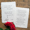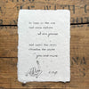 The words are printed in a typewriter font on handmade cotton rag paper with deckle edges. The color of the paper is a natural, unbleached white but may occasionally have tiny speckles of random color from other fibers mixed in. Size varies slightly because of the imperfect nature of handmade paper, but will be roughly 5" x 7", 8" x 10", or 11" x 14" based on your selection.