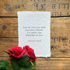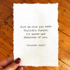 The words are printed in a typewriter font on handmade cotton rag paper with deckle edges. The color of the paper is a natural, unbleached white but may occasionally have tiny speckles of random color from other fibers mixed in. Size varies slightly because of the imperfect nature of handmade paper, but will be roughly 5" x 7", 8" x 10", or 11" x 14" based on your selection.