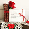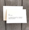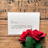 The words are printed in typewriter font on your choice of Kraft BROWN, WHITE, or IVORY cardstock. The kraft brown cardstock is not a flat brown, but has fiber mixed in. Size is 4" x 5.5". Corresponding envelopes are included. You will also receive a free Alison Rose Vintage sticker. Just peel the back off and seal your card with a red rose!