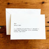 joy definition greeting card in typewriter font with envelope and rose sticker.