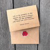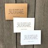 The words are printed in typewriter font on your choice of Kraft BROWN, WHITE, or IVORY cardstock. The kraft brown cardstock is not a flat brown, but has fiber mixed in. Size is 4" x 5.5". Corresponding envelopes are included. You will also receive a free Alison Rose Vintage sticker. Just peel the back off and seal your card with a red rose!