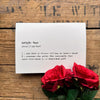 neighbor definition greeting card in typewriter font with envelope and rose sticker seal.