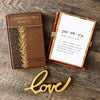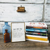 The words are printed in a typewriter font on handmade cotton rag paper. The color of the paper is a natural, unbleached white but may occasionally have tiny speckles of random color from other fibers mixed in. Size varies slightly because of the imperfect nature of handmade paper, but will be roughly 5" x 7", 8" x 10", or 11" x 14" based on your selection.