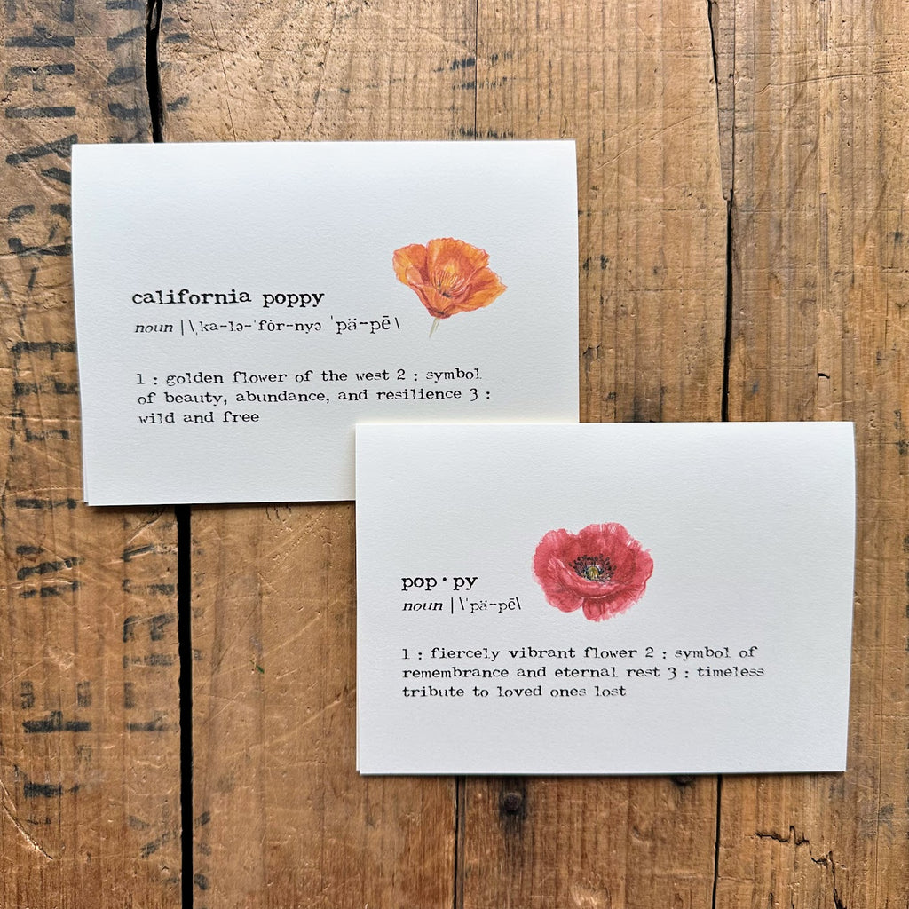 poppy definition greeting card in typewriter font with original red flower watercolor image.