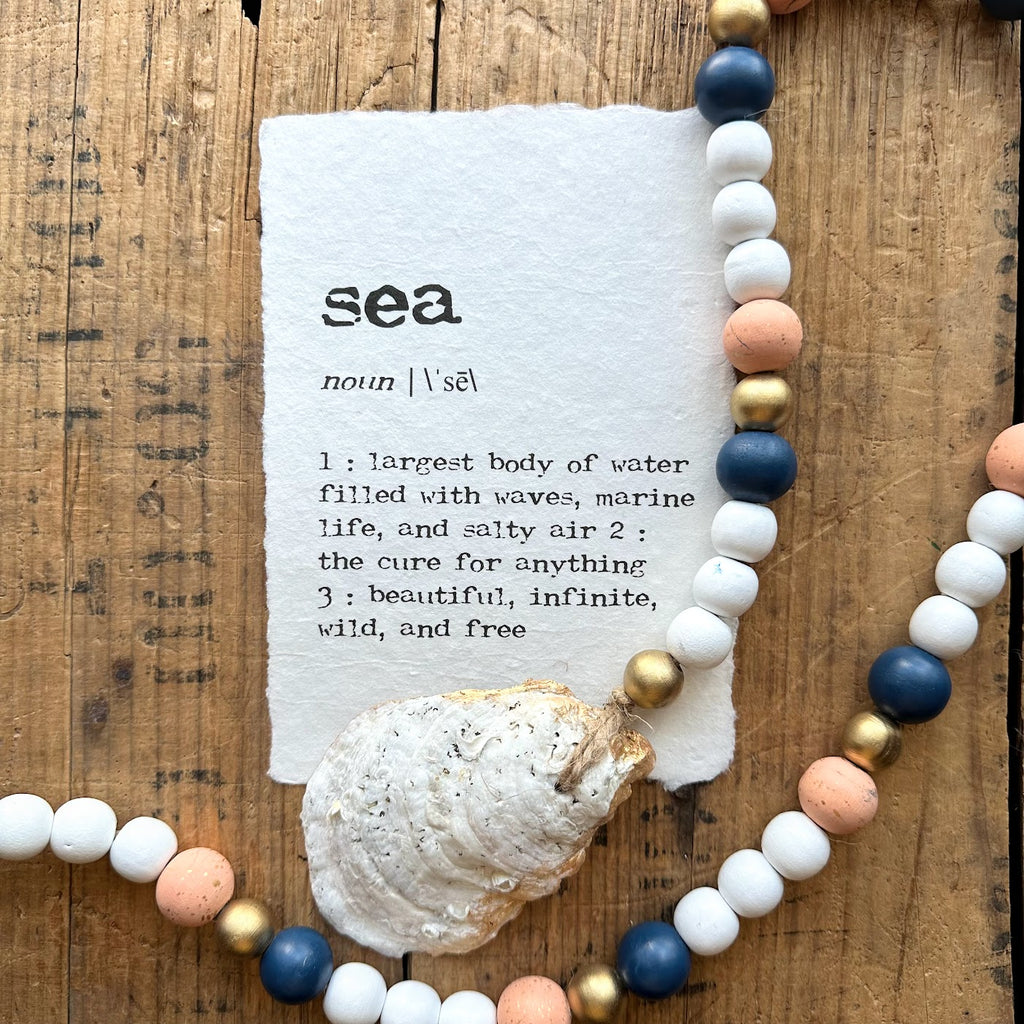 The sea is the largest body of water filled with waves, marine life, and salty air, the cure for anything, and beautiful, infinite, wild, and free. This sea definition print would make a thoughtful gift for anyone who loves coastal, beach, and tropical vibes. This would also make great beach house decor.