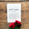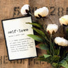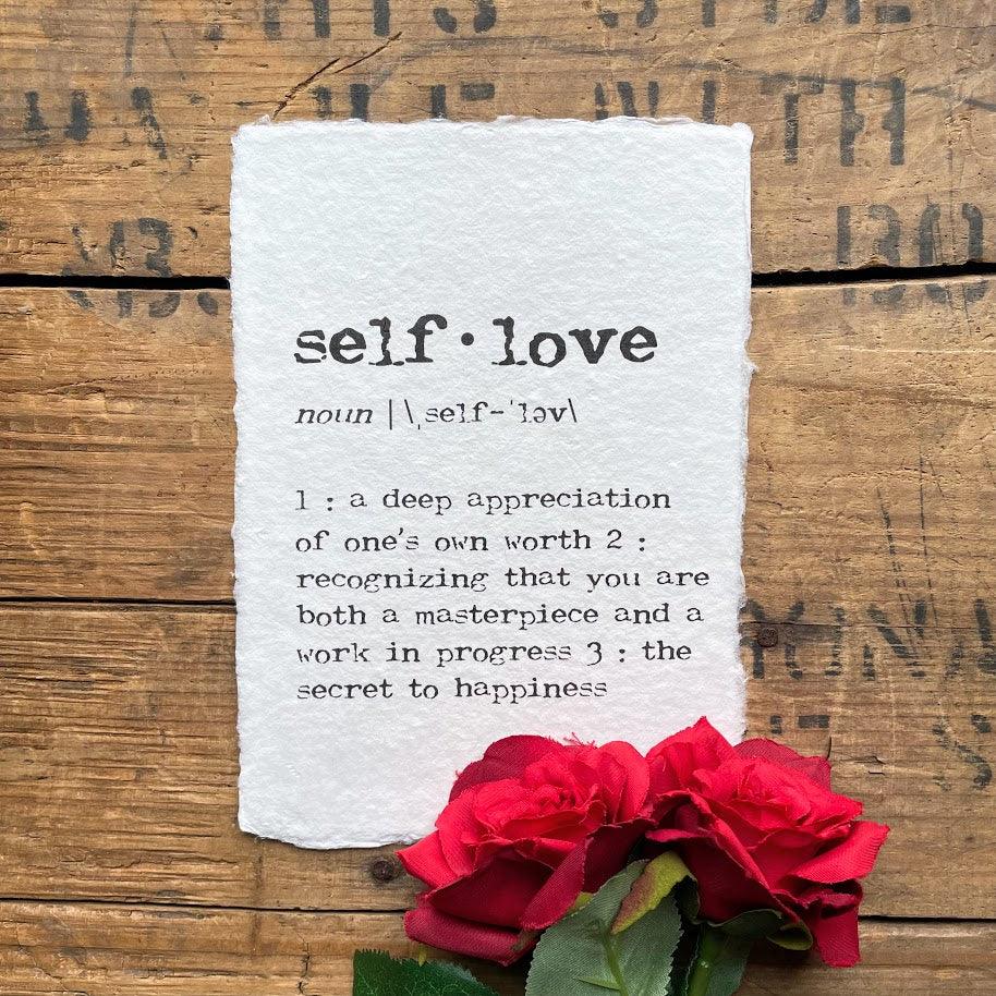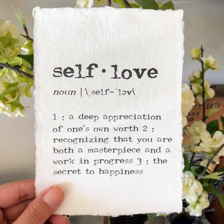 self-love definition print on handmade cotton rag paper. Self-love is a deep appreciation of one's own self worth, recognizing that you are both a masterpiece and a work in progress, and the secret to happiness.