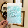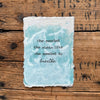 The words are printed in a typewriter font on handmade wave paper paper with deckle edges. This specialty paper and was designed to look like ocean waves and sand. Each sheet is unique, some have more sand and some have more blue waves. Size varies slightly because of the imperfect nature of handmade paper, but will be roughly 5" x 7" or 8" x 10" based on your selection.
