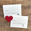 The words are printed in typewriter font on your choice of Kraft BROWN, WHITE, or IVORY cardstock. The kraft brown cardstock is not a flat brown, but has fiber mixed in. Size is 4" x 5.5". Corresponding envelopes are included. You will also receive a free Alison Rose Vintage sticker. Just peel the back off and seal your card with a red rose!