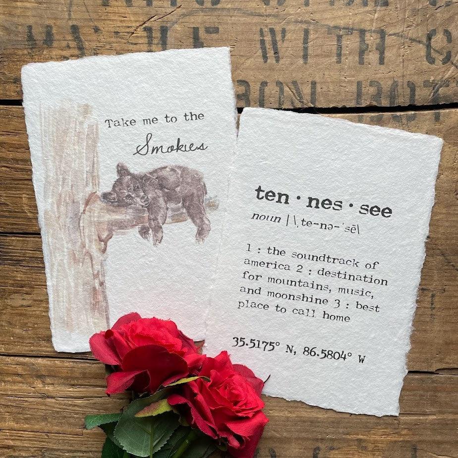 tennessee definition print in typewriter font on handmade cotton rag paper.