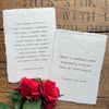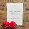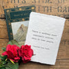 The words are printed in a typewriter font on handmade cotton rag paper. The color of the paper is a natural, unbleached white but may occasionally have tiny speckles of random color from other fibers mixed in. Size varies slightly because of the imperfect nature of handmade paper, but will be roughly 5" x 7", 8" x 10", or 11" x 14" based on your selection.