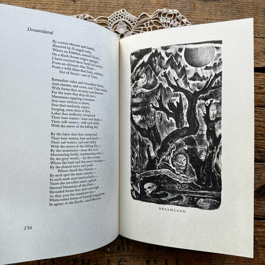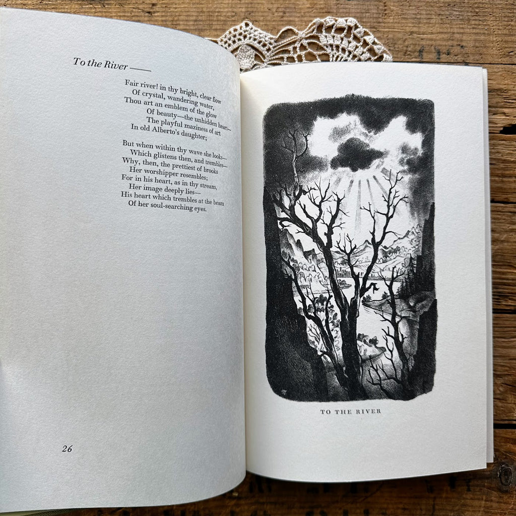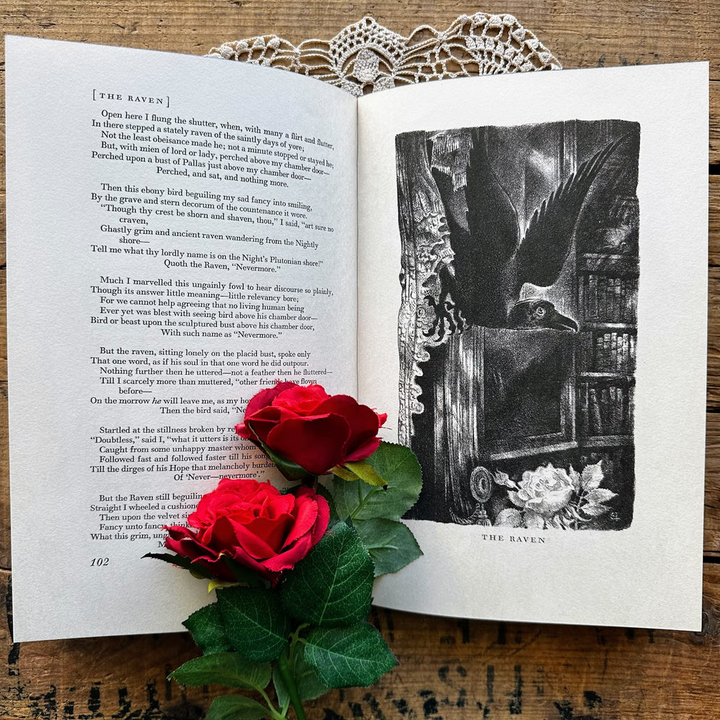 Famous poems include The Raven, Lenore, Annabel Lee, The Bells, A Valentine, and many more. This would make great home decor or a gift for a book collector.