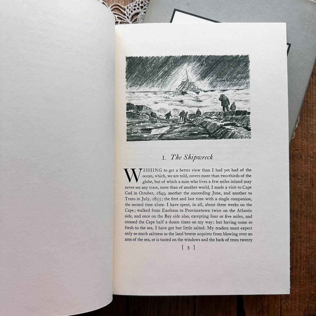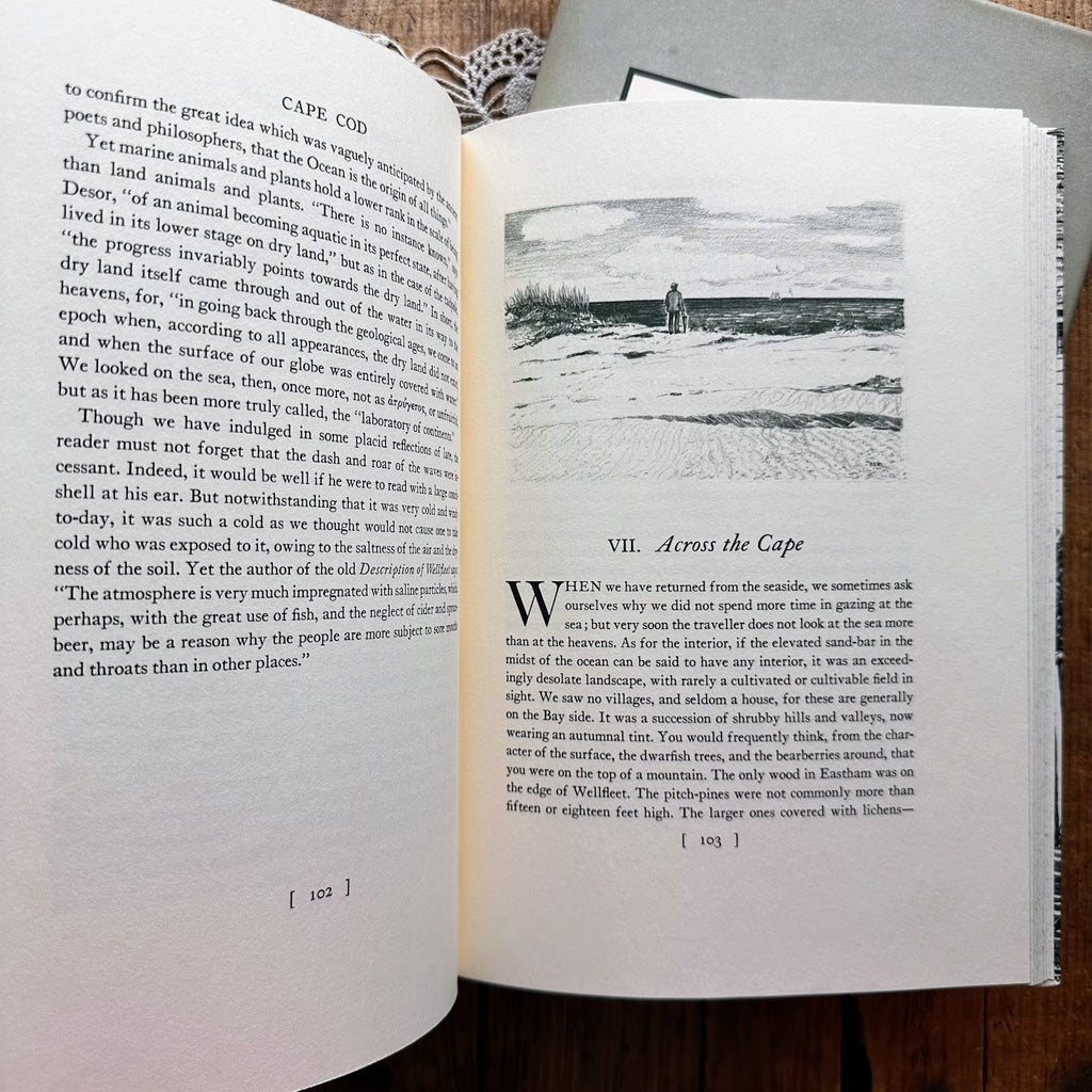 This book includes Thoreau's recorded adventures including chapters on The Shipwreck, Stage-Coach Views, The Plains of Nauset, The Beach, The Wellfleet Oysterman, The Beach Again, Across the Cape, The Highland Light, The Sea and the Desert, and Provincetown. There are lovely black and white images throughout the book, as well a map of Cape Cod on the inside covers.