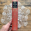 There is wear and discoloration on the cover, spine, and pages due to age. The book measures about 7.5" x 5.25" x 1.25".