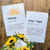 The words are printed in a typewriter font on handmade cotton rag paper with deckle edges. The color of the paper is a natural, unbleached white but may occasionally have tiny speckles of random color from other fibers mixed in. Size varies slightly because of the imperfect nature of handmade paper, but will be roughly 5" x 7", 8" x 10", or 11" x 14" based on your selection.