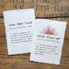 The words are printed in a typewriter font on handmade cotton rag paper with deckle edges. The color of the paper is a natural, unbleached white but may occasionally have tiny speckles of random color from other fibers mixed in. Size varies slightly because of the imperfect nature of handmade paper, but will be roughly 5" x 7", 8" x 10", or 11" x 14" based on your selection.