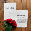 Give or receive the feeling of wonder with this definition print. This print is perfect for word of the year home or office decor, holiday decor, or to give as a gift of love or encouragement.